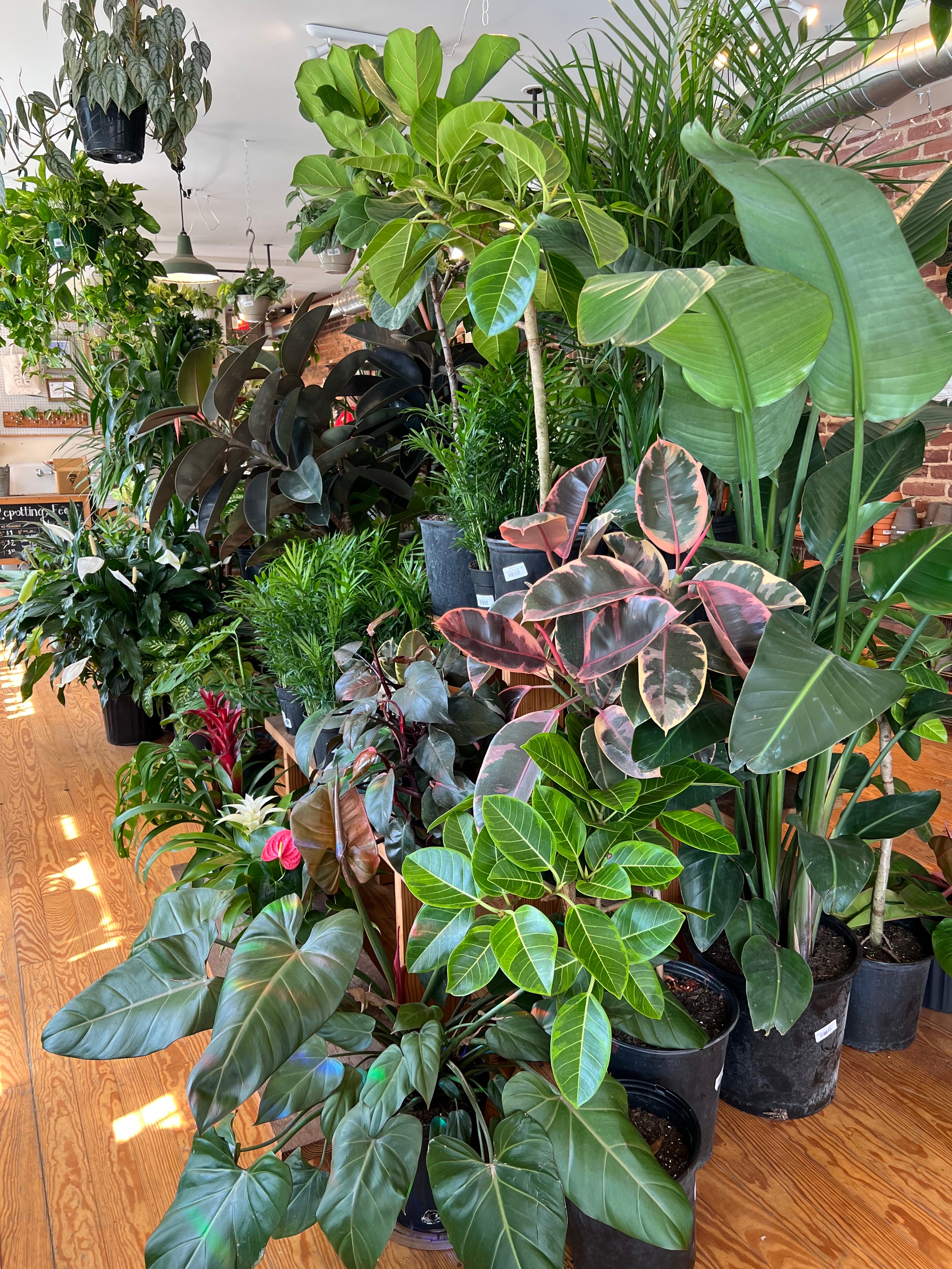 A woman-owned plant shop in Baltimore offering indoor plants, pots, care supplies, wrapped bouquets, curated gifts and workshops.