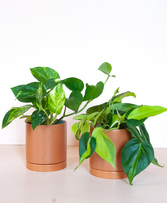 Choose between plants in their plastic nursery pots, placed inside decorative woven baskets or placed into simple white or black cylinder pots.