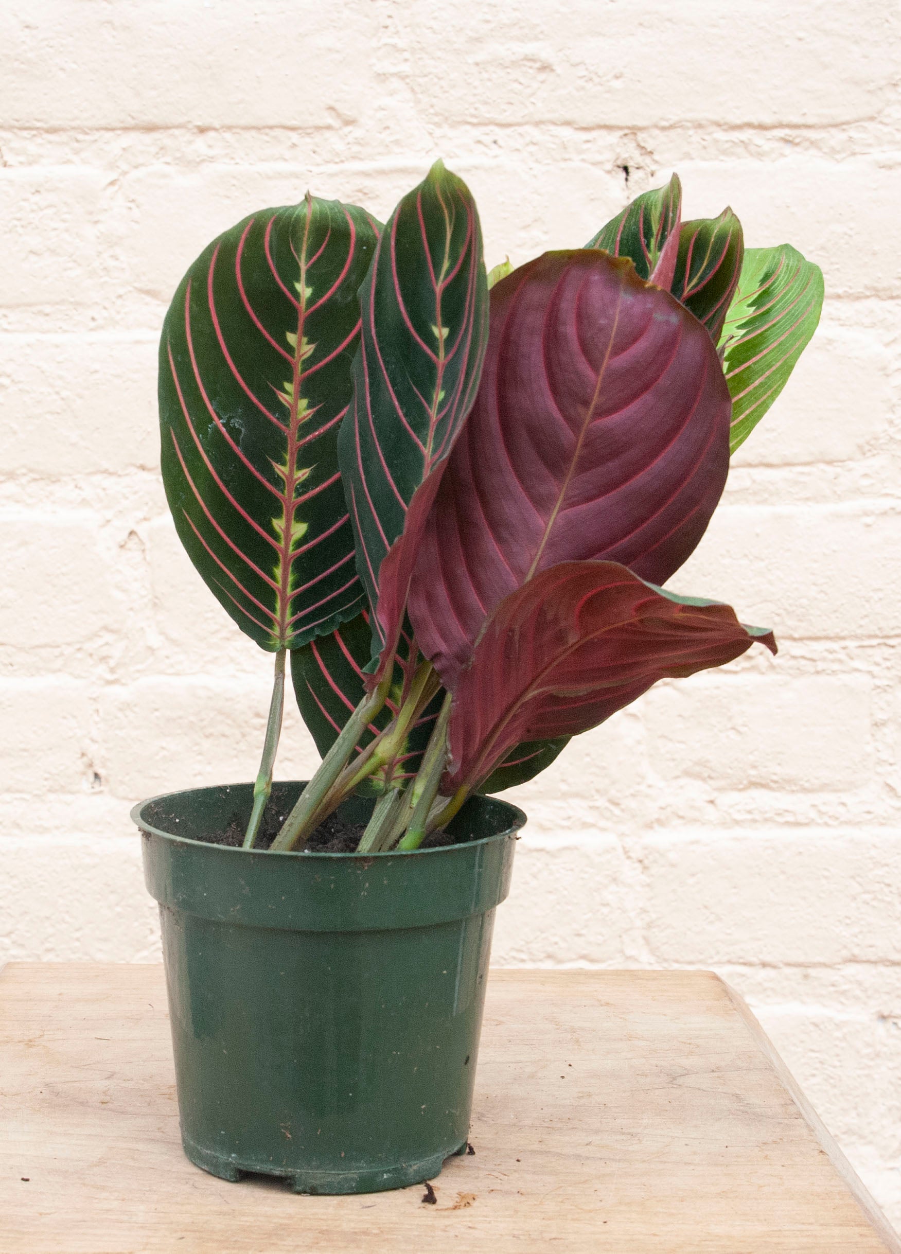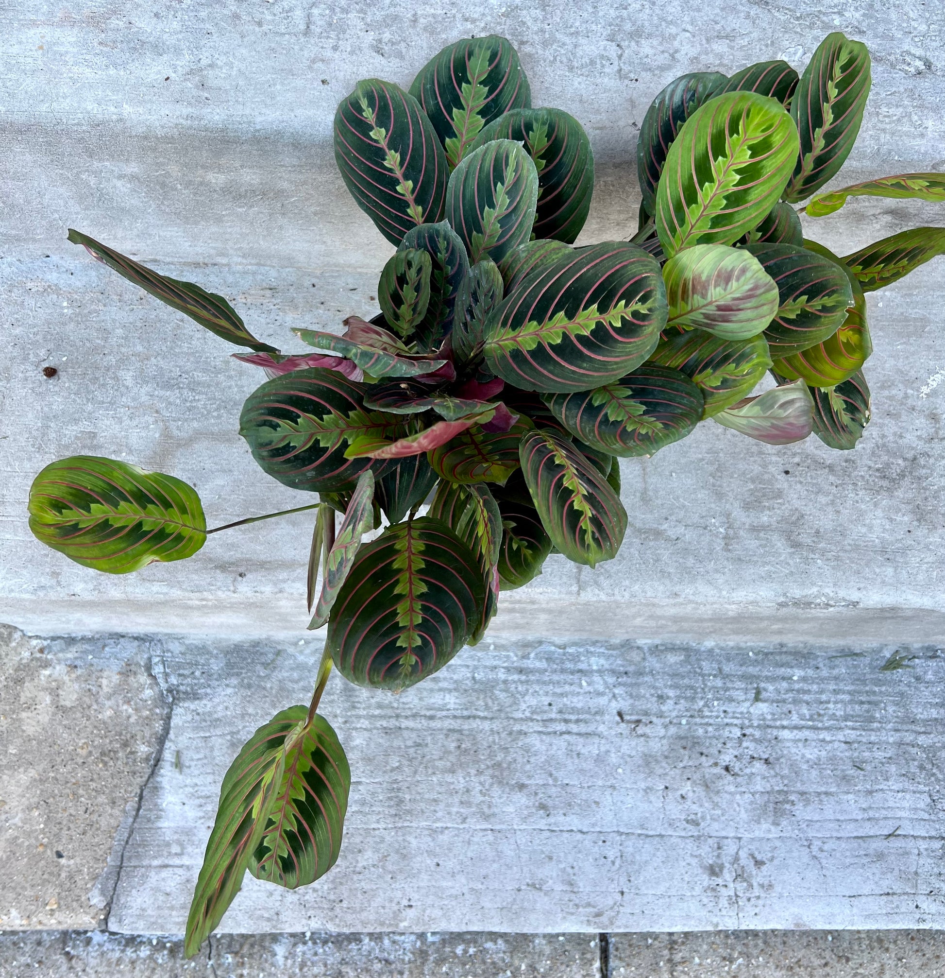Water: Water when the soil is about 25% dry or less (about an inch). Calathea/Maranta can be fussy with tap water and may require filtered, distilled, or rainwater if you have hard tap water. You will notice browning edges if your tap water is too hard.