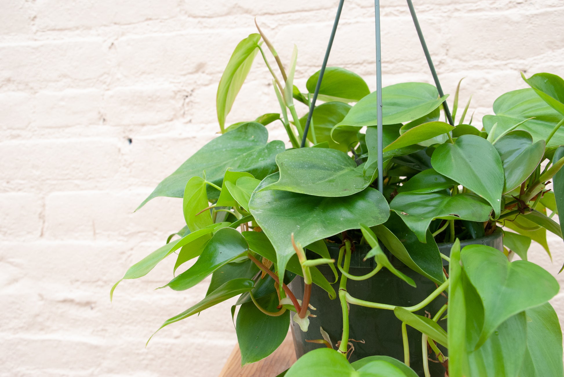 The Philodendron cordatum, or heart-leaf philodendron, is a trailing plant native to Southeast Brazil. They prefer indirect, bright light but will tolerate medium light settings. Water when the top 50% of soil has dried to the touch.