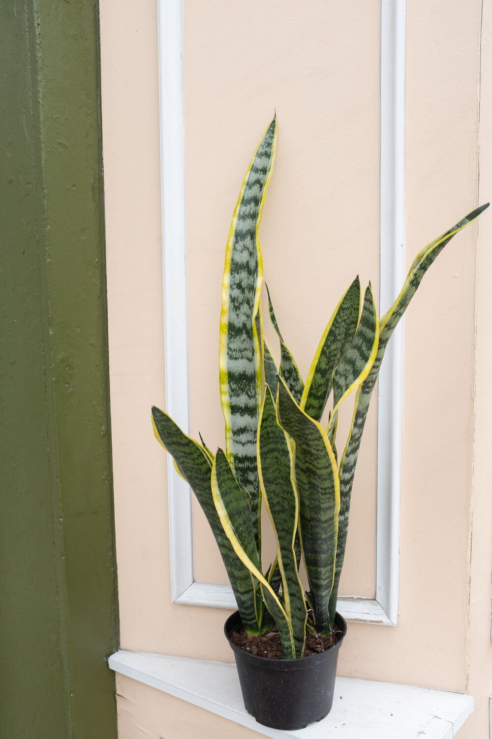 Sansevieria trifasciata 'Laurentii' is a variegated cultivar of the Sansevieria trifasciata which is native to tropical Western Africa. It is also known as a Snake Plant or Mother-in-Laws Tongue.