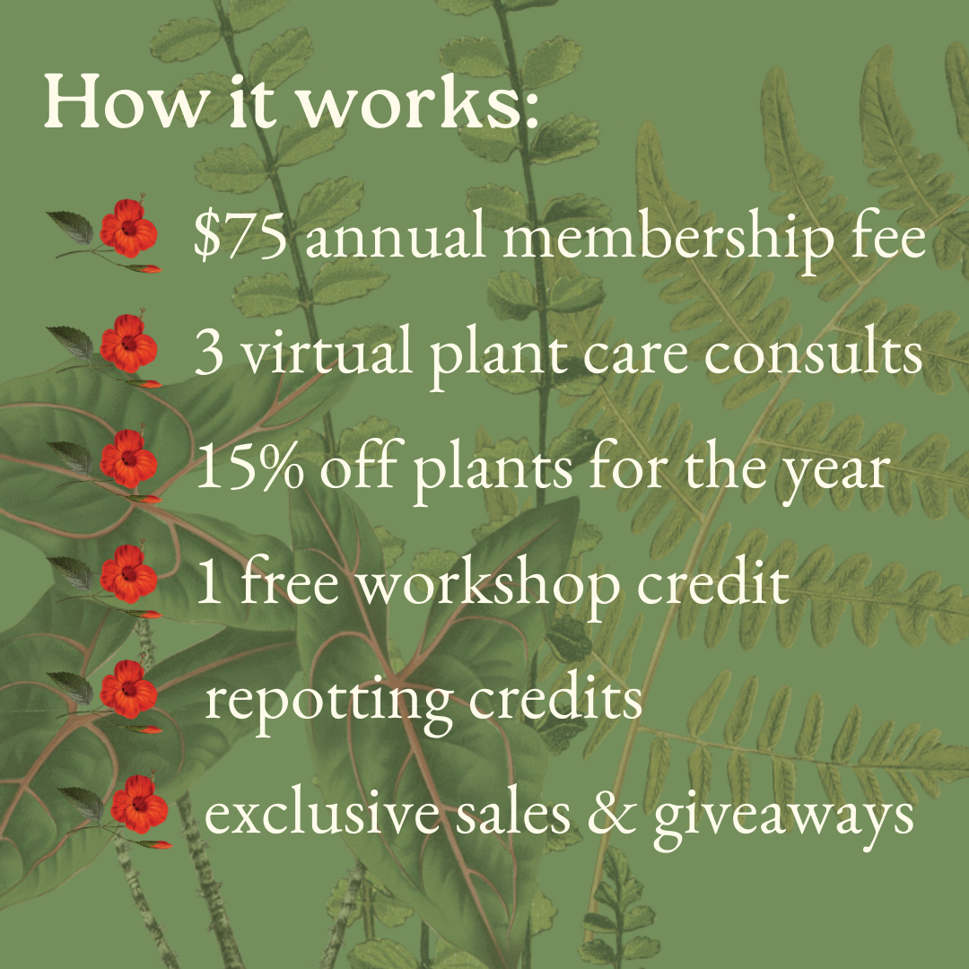 - 3 virtual plant care consults (or $60 towards other plant services)