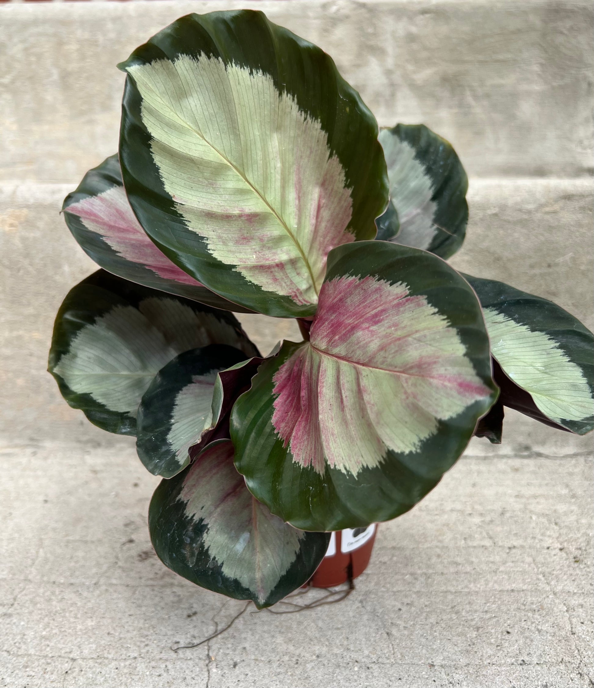 Native to South America, Calathea sp. enjoy bright, indirect light and water when the top 1/3 of soil dries out. High humidity is a plus, leaf tips can brown from low humidity and under watering. Filtered water is preferred when watering, this species can be a little particular!