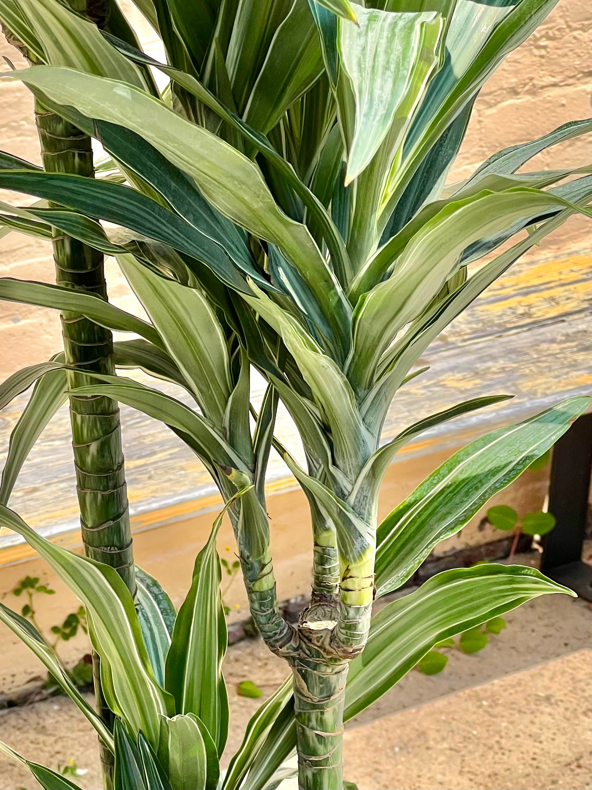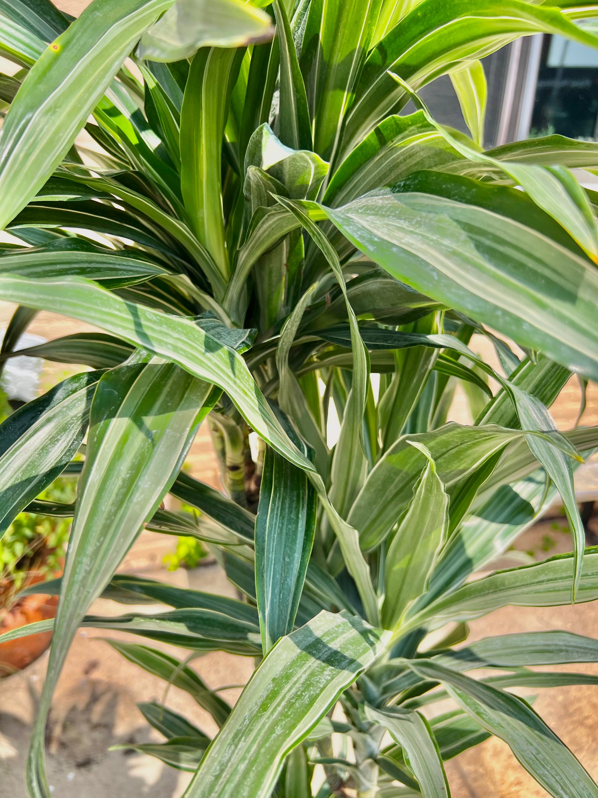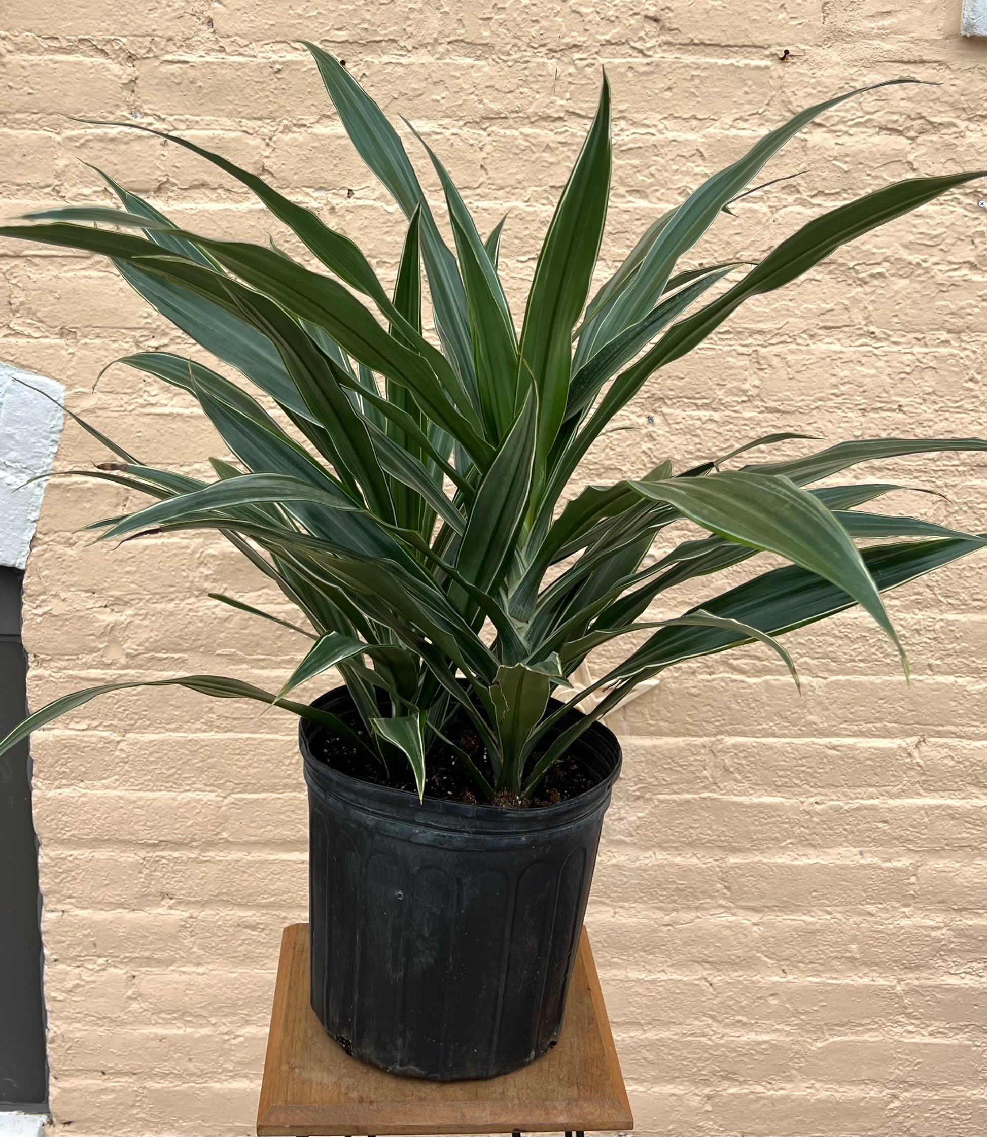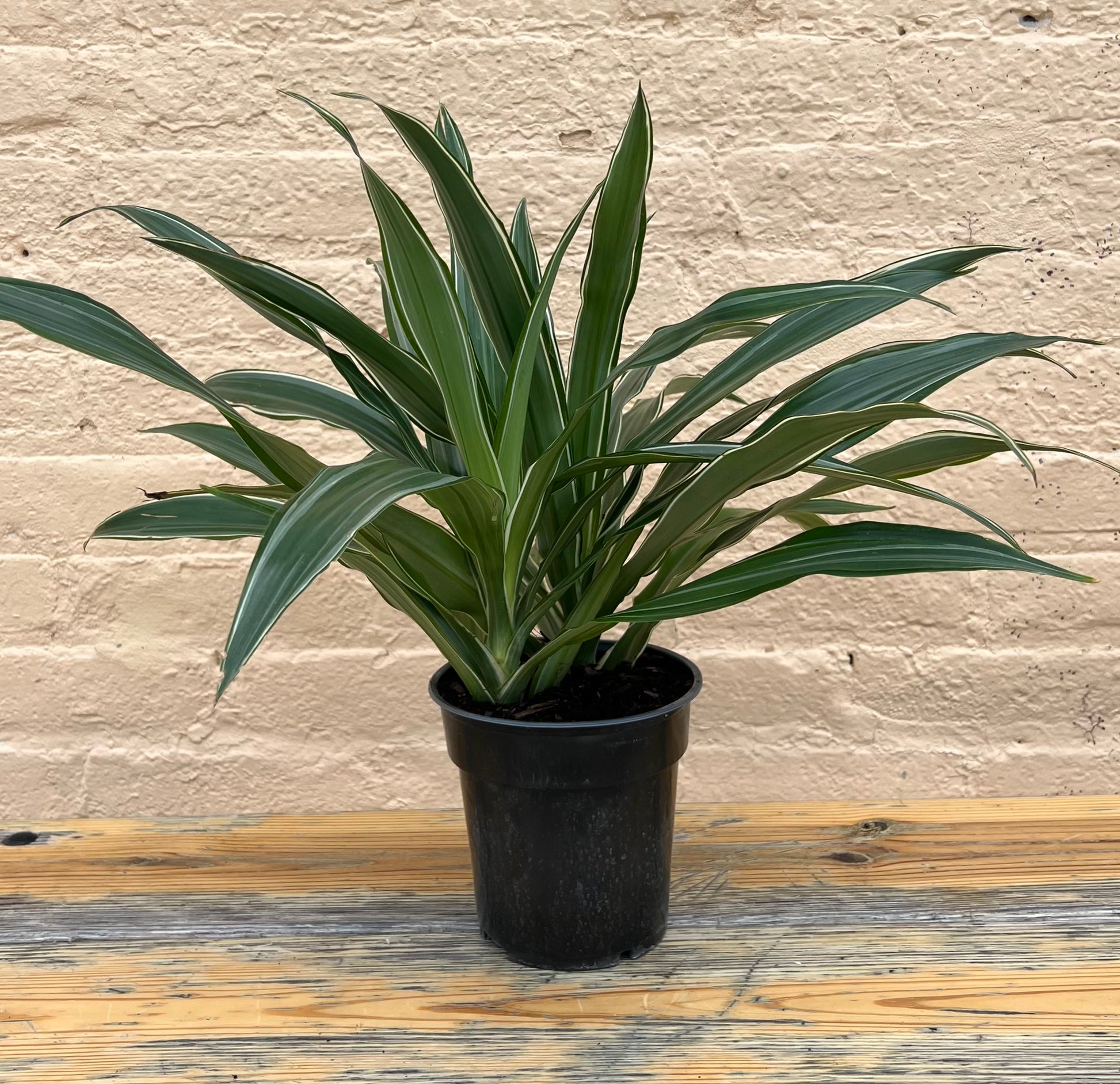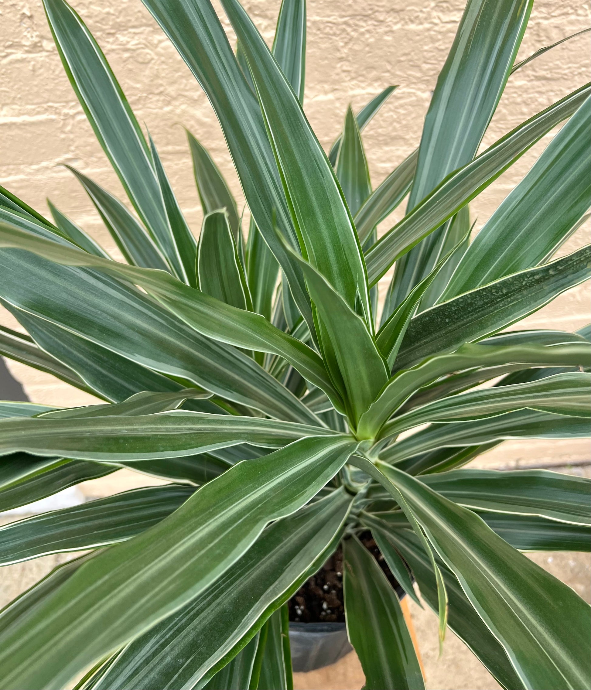 Dracaena are mostly native to Africa and commonly known as dragon trees and corn plants. They're an easygoing houseplant that adjust well to low light and require infrequent watering. They will thrive with bright, indirect light and watering when the top 75%-100% of soil dries out, but can adjust to lower light with even less frequent watering.