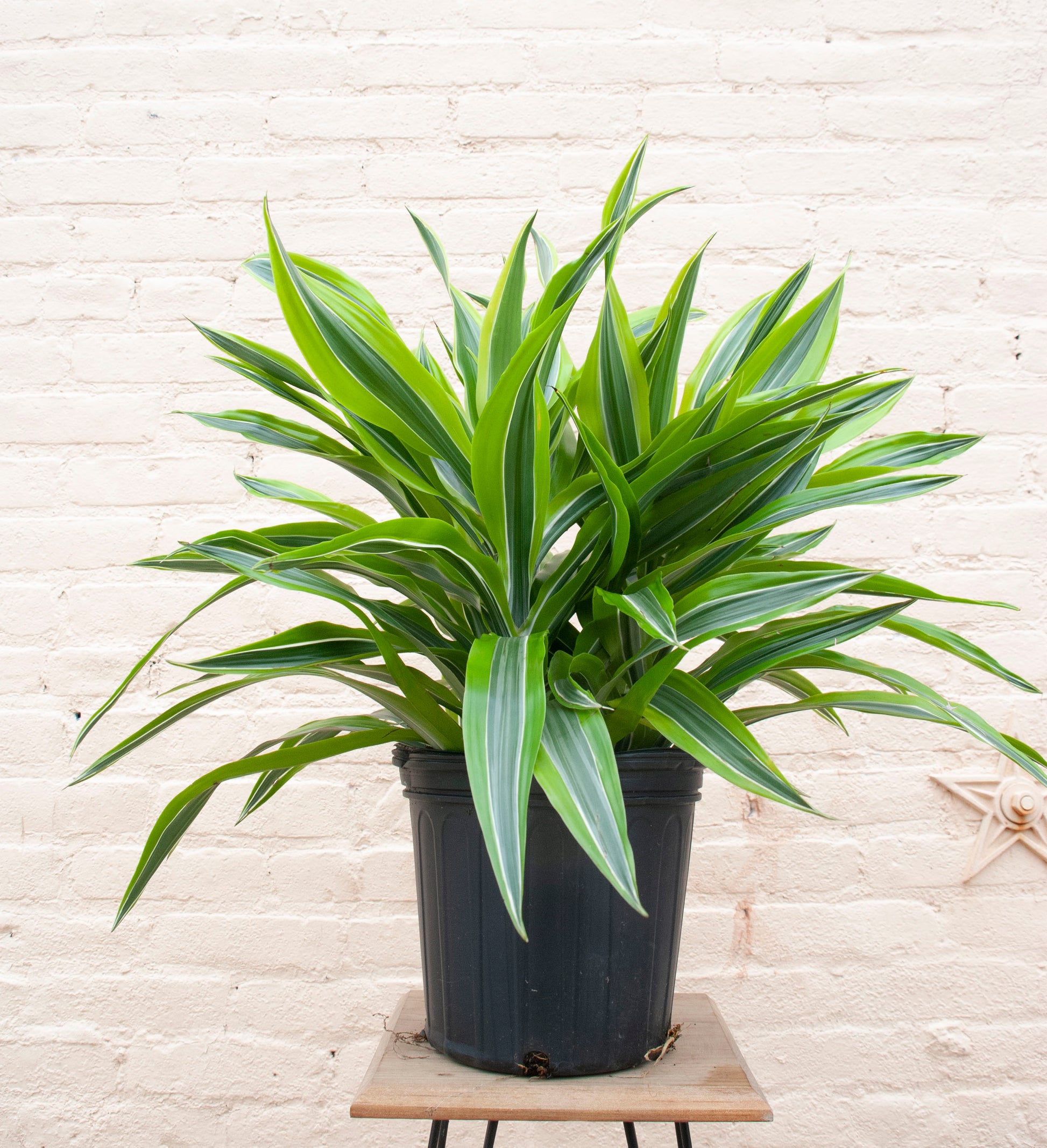 Water: Water when the soil is about 75-100% dry. Leaves will begin to curl in and/or droop. Dracaena have a thick trunk that stores a lot of water. They can experience root rot easily from overwatering, so make sure the soil dries thoroughly in between watering.