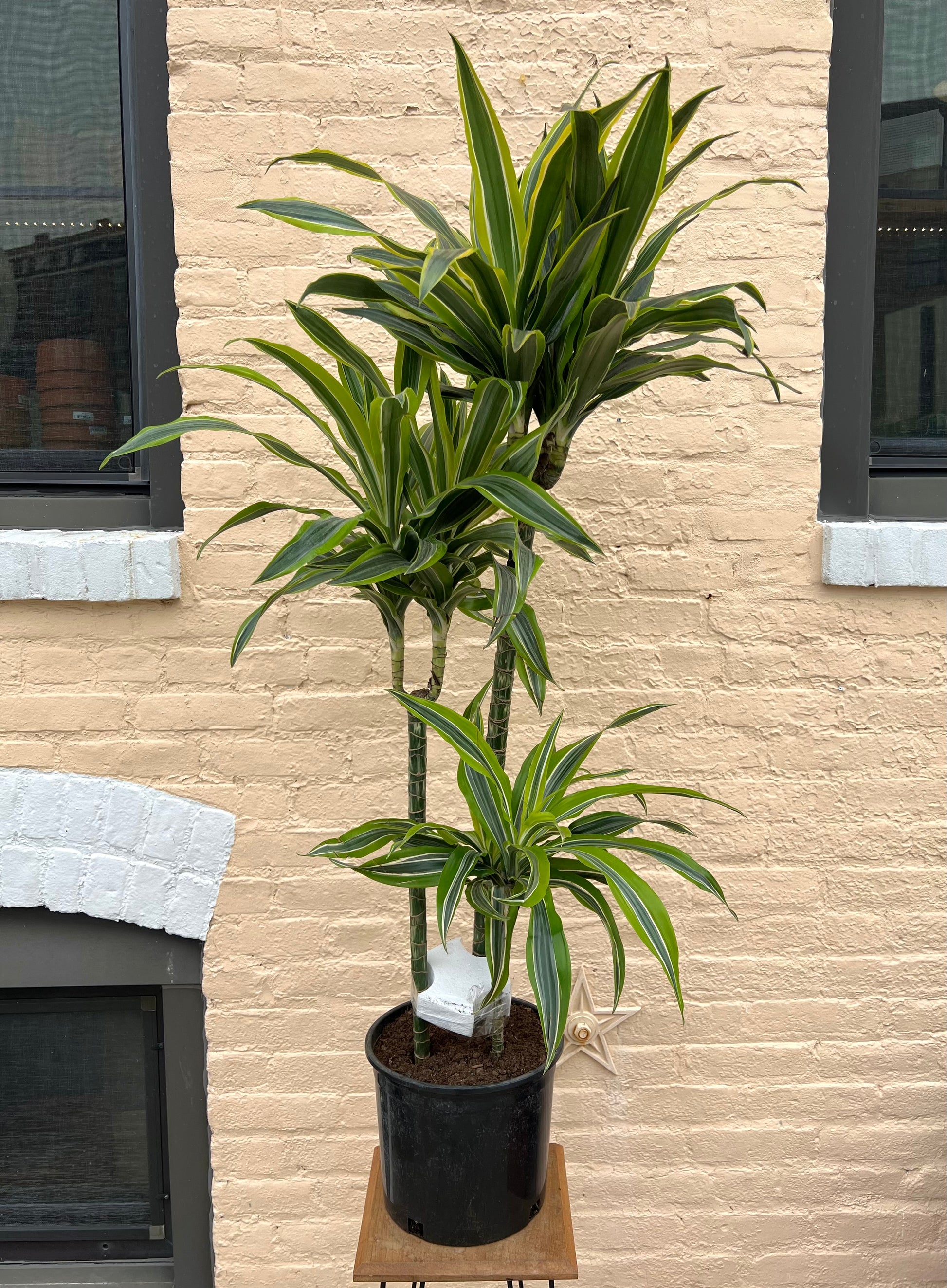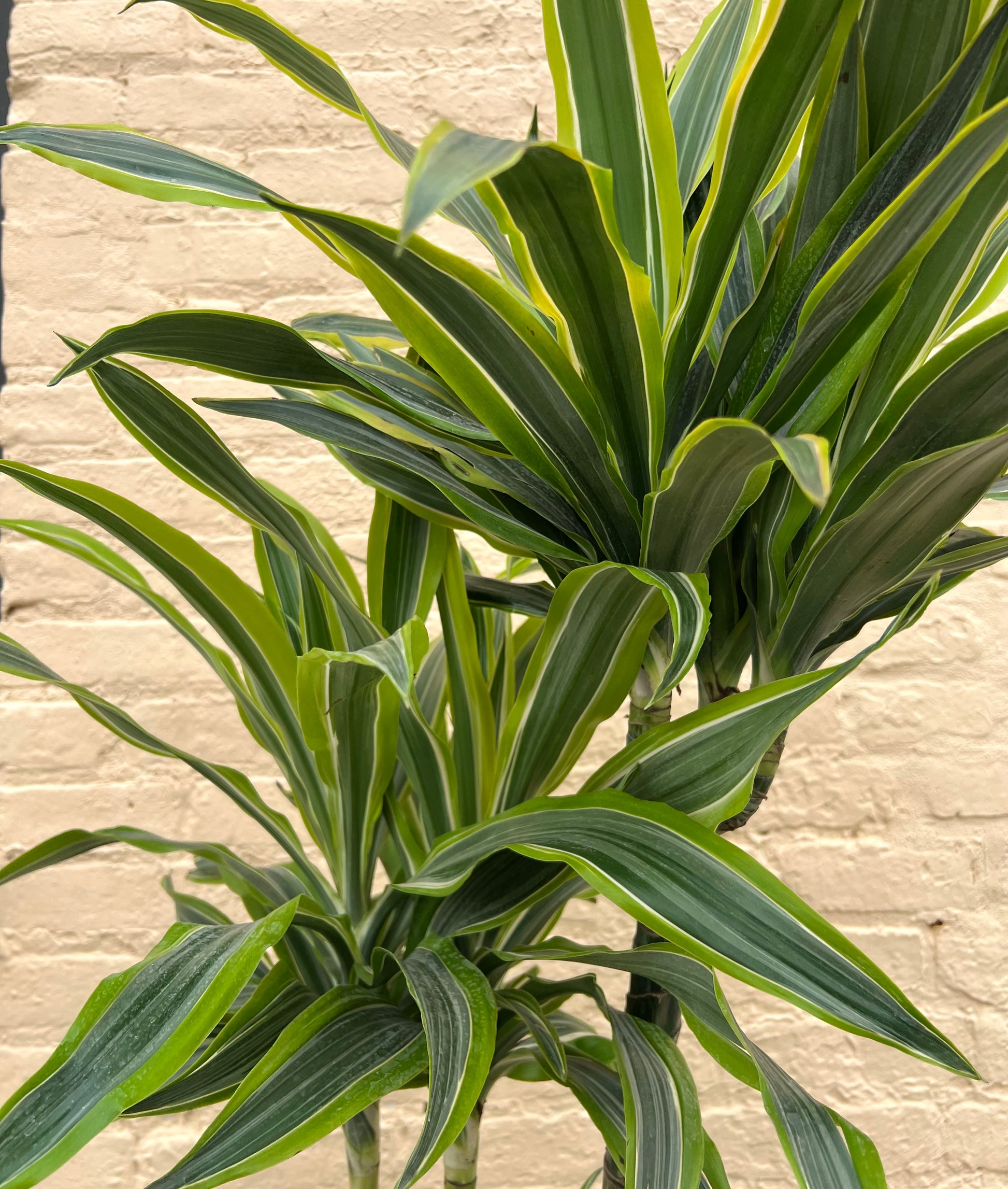 Water: Water when the soil is about 100% dry. Leaves will begin to curl in and/or droop. Dracaena have a thick trunk that stores a lot of water. They can experience root rot easily from overwatering, so make sure the soil dries thoroughly in between watering.