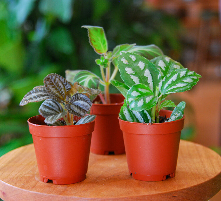 Assorted 2” tropical plants that do best in bright, indirect light. These young plants will dry out fast! Make sure to keep a close eye on them or get them potted up / in a terrarium for more moisture retention in the soil.
