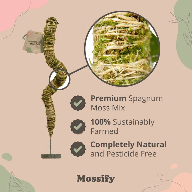 Train your plants to grow where you want them to! Climbing Plants DO NOT grow at a perfect 90º angle. The Original Bendable Moss Pole™ by Mossify is a groundbreaking and award-winning moss pole that's revolutionizing the way customers support and enhance the growth of their tropical plants. Created with both novice and experienced indoor gardeners in mind, our unique and versatile pole is an essential addition to any plant collection. Unlike other moss poles that are straight and rigid, our pole is designed to be bendable and flexible, allowing plants to grow at their own natural pace and in any direction.