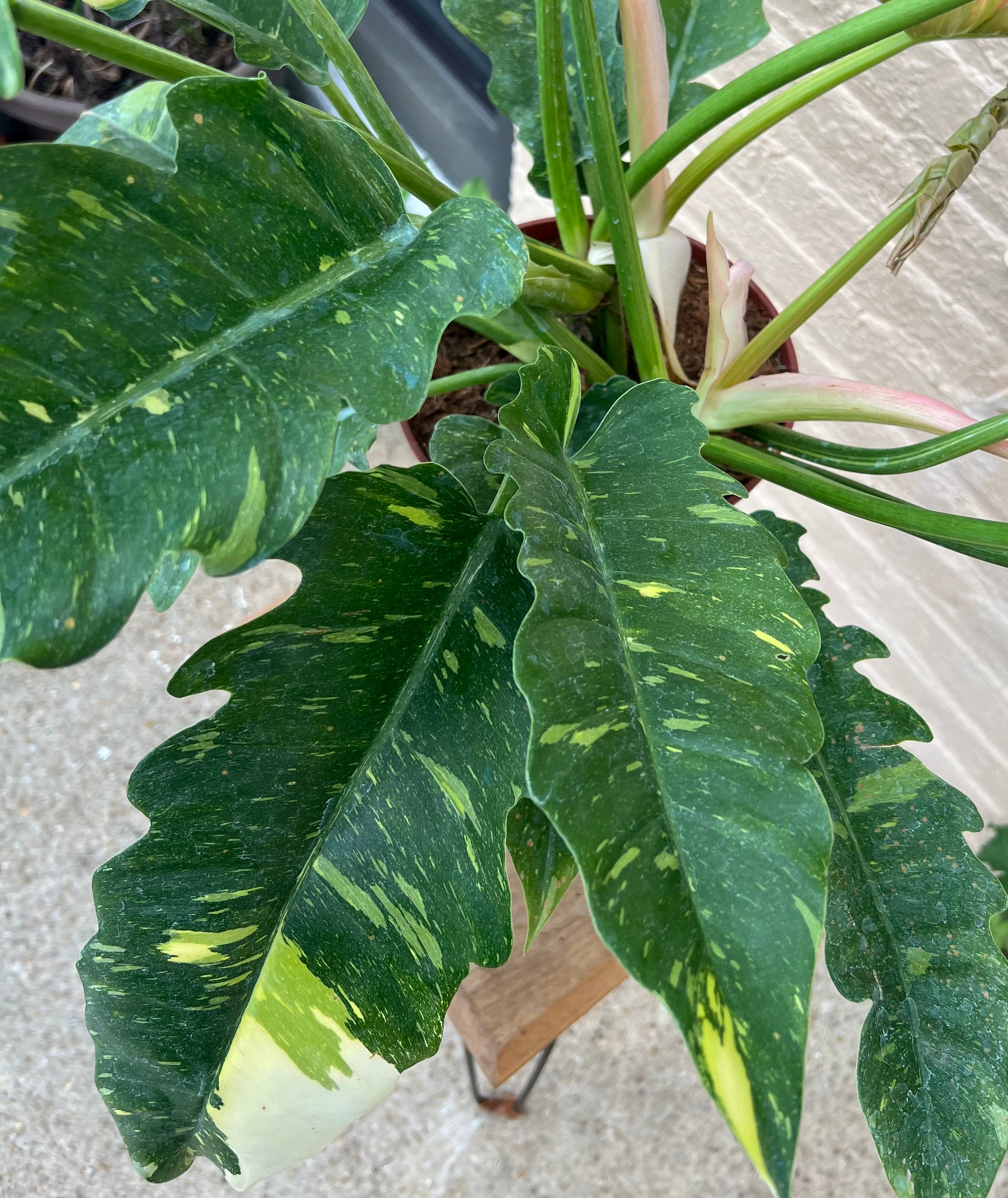 A beautiful philodendron hybrid of Philodendron tortum x Philodendron wendlandii. Bright, indirect light. Water when the soil is 75% dry. Loves to climb and have high humidity.