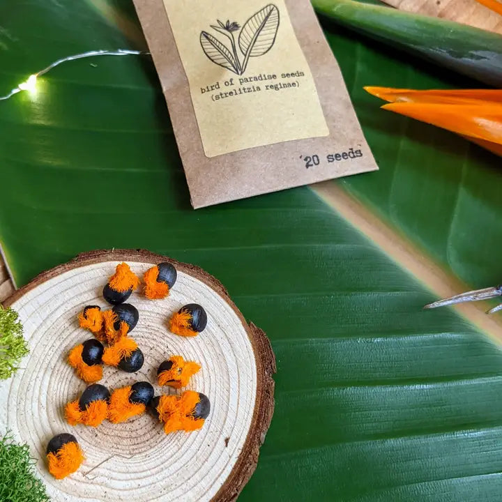 - 1 brown packet of 20 Strelitzia 'Bird of Paradise' seeds (care guide included)