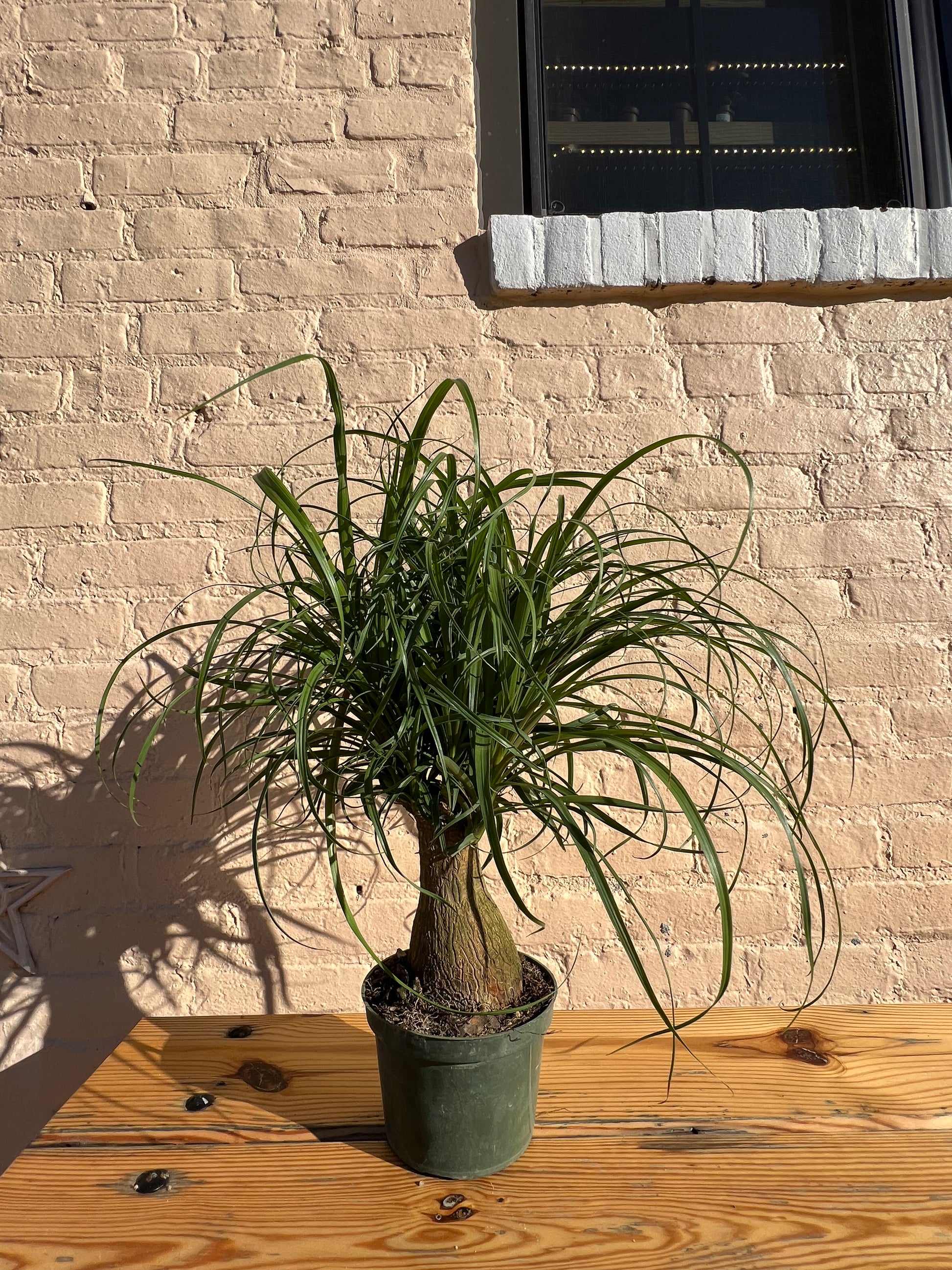 The Beaucarnea recurvata is an extremely forgiving plant! While they prefer bright indirect light, they can tolerate direct sun for most of the day, and can even adjust to medium light settings. Since the plant is considered a succulent, it is best to water once the soil has completely dried.