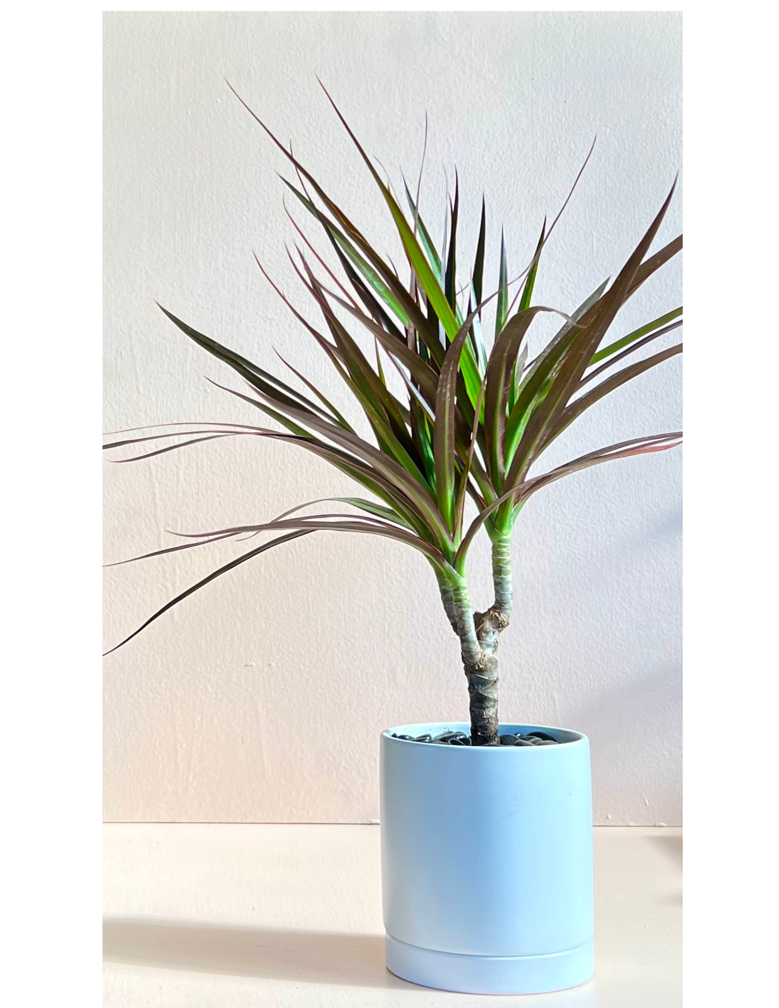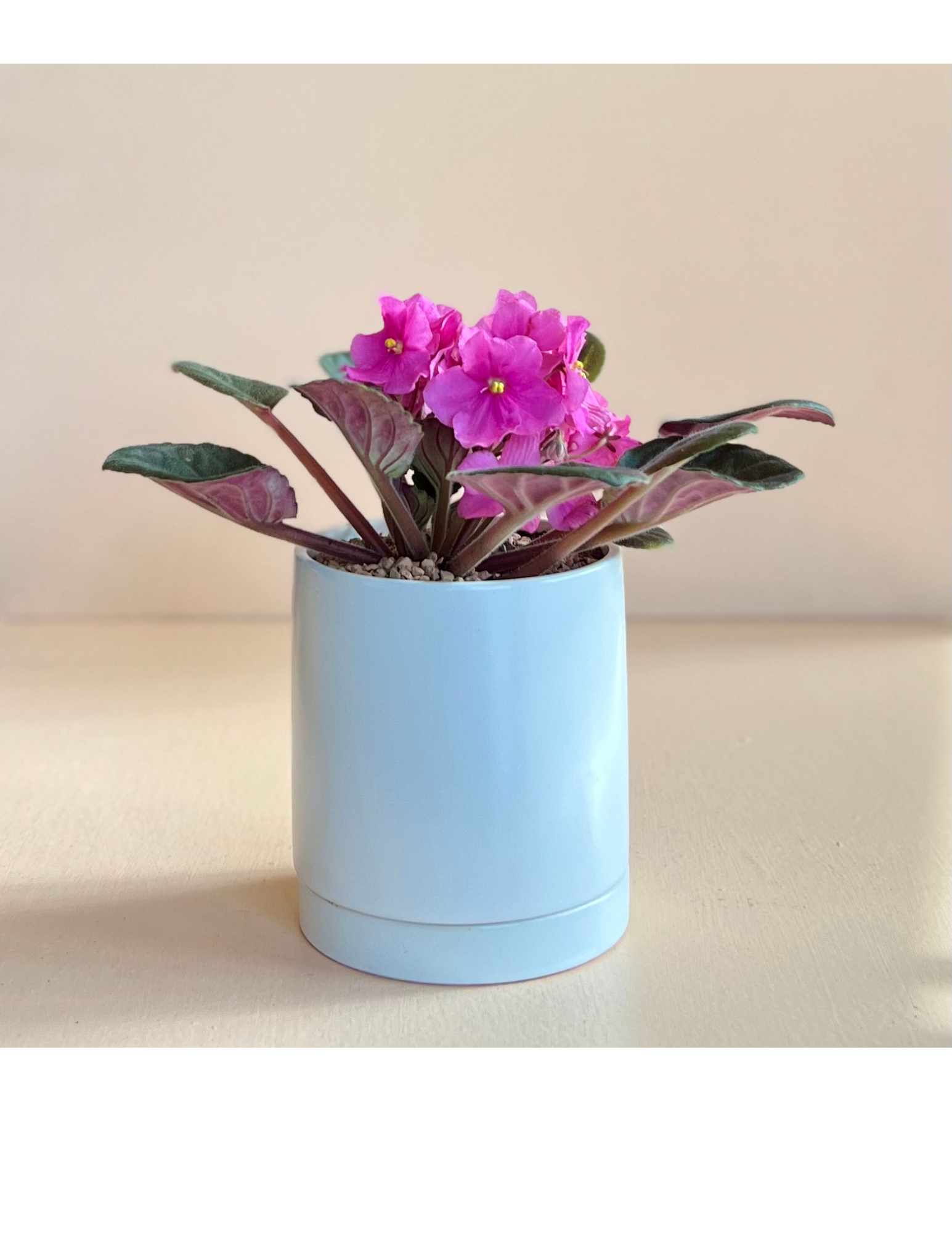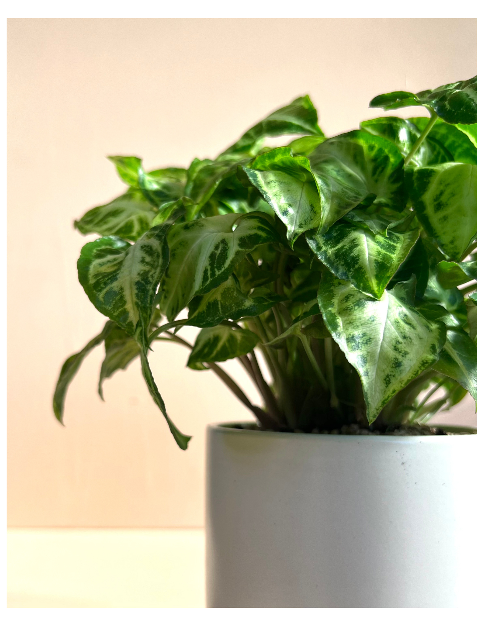 Hardy tropicals potted up in a ceramic white planter with drainage hole and saucer. Pot measures about 5" tall. All plants will be suitable for indirect light, most tolerating a low light condition.