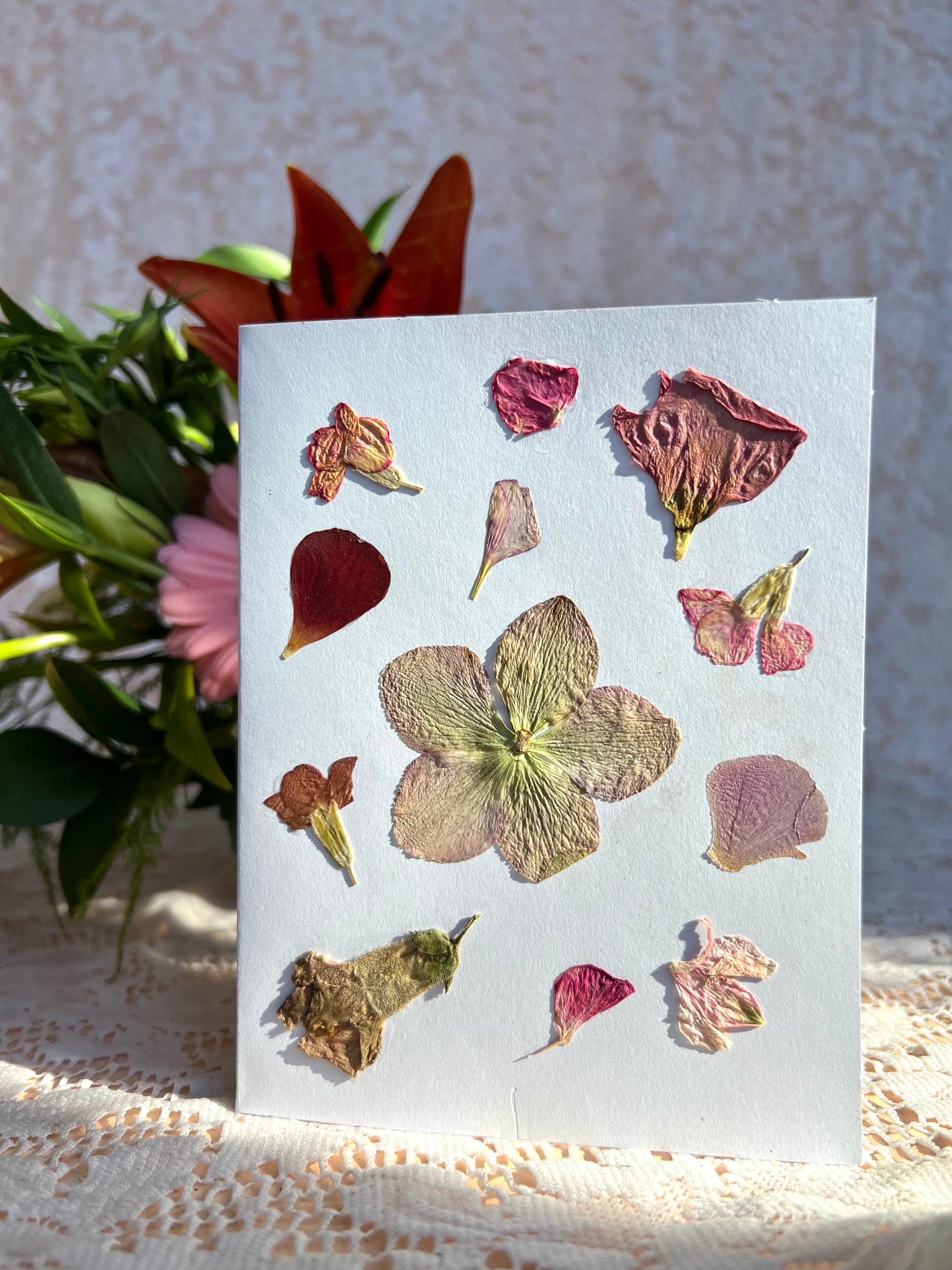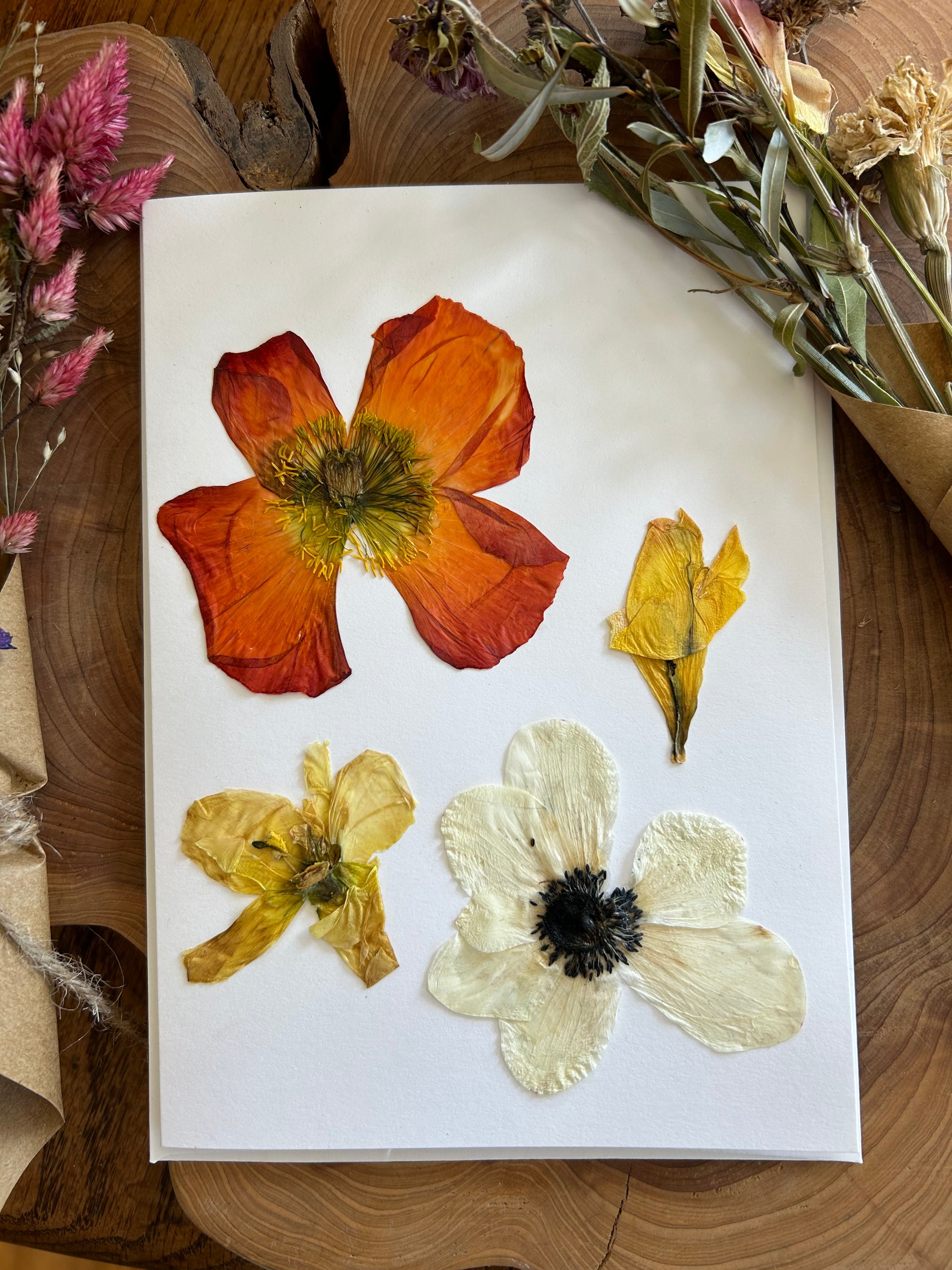 Blank greeting card made with flowers pressed in-shop.