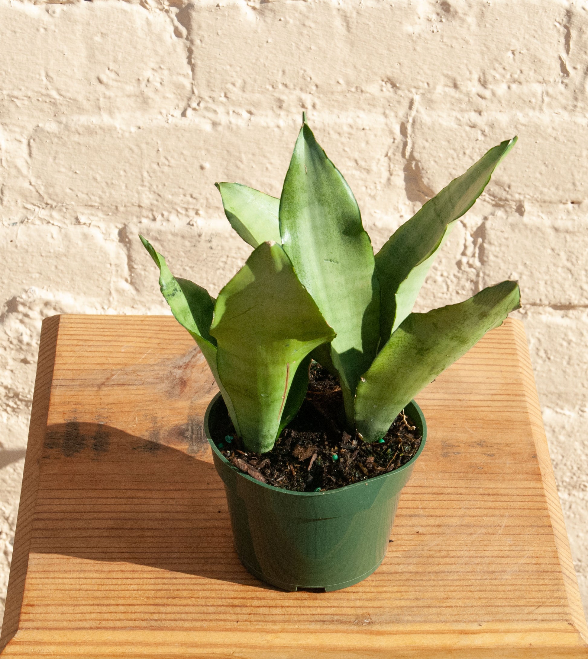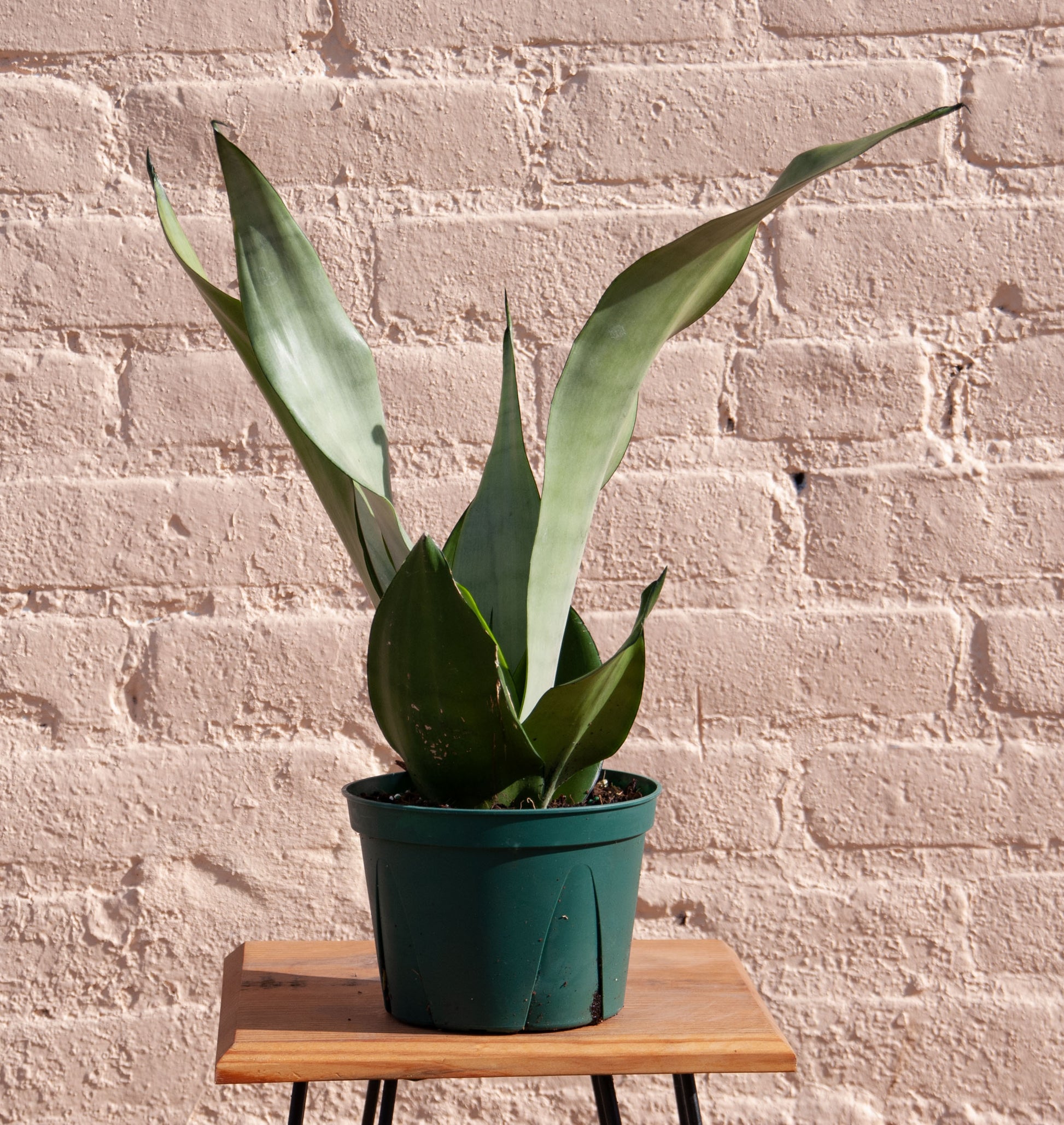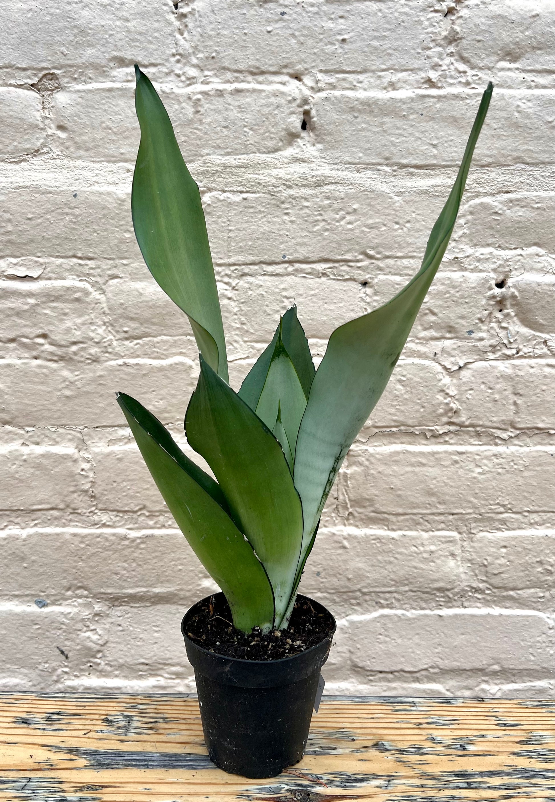 Native to Western Africa, Sansevieria is a large family of plants that are fairly easy to maintain. Sansevieria moonshine prefers bright light, but can adjust to low light conditions as well (leaves will darken in lower light). Water when all of the soil has completely dried, these plants are very drought tolerant. Watering frequency depends on the amount of light the plant is receiving!