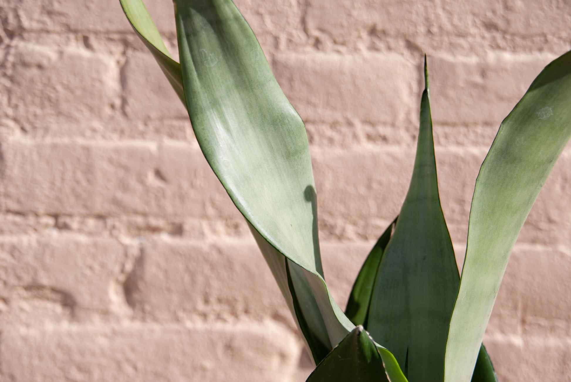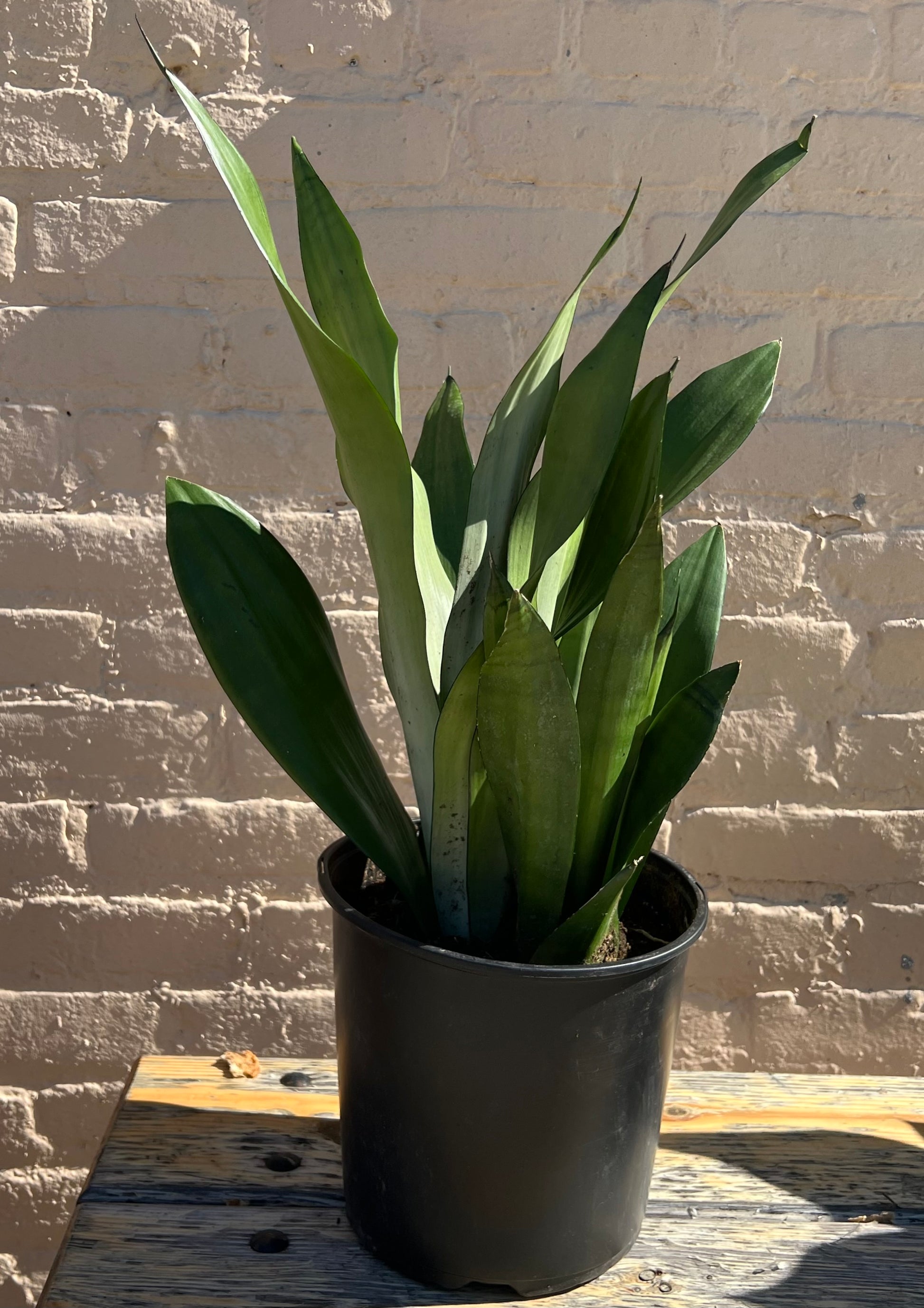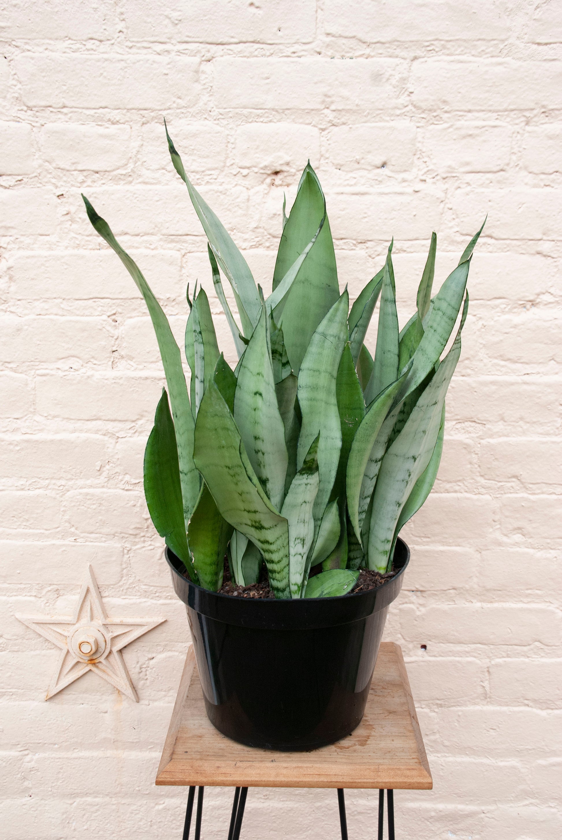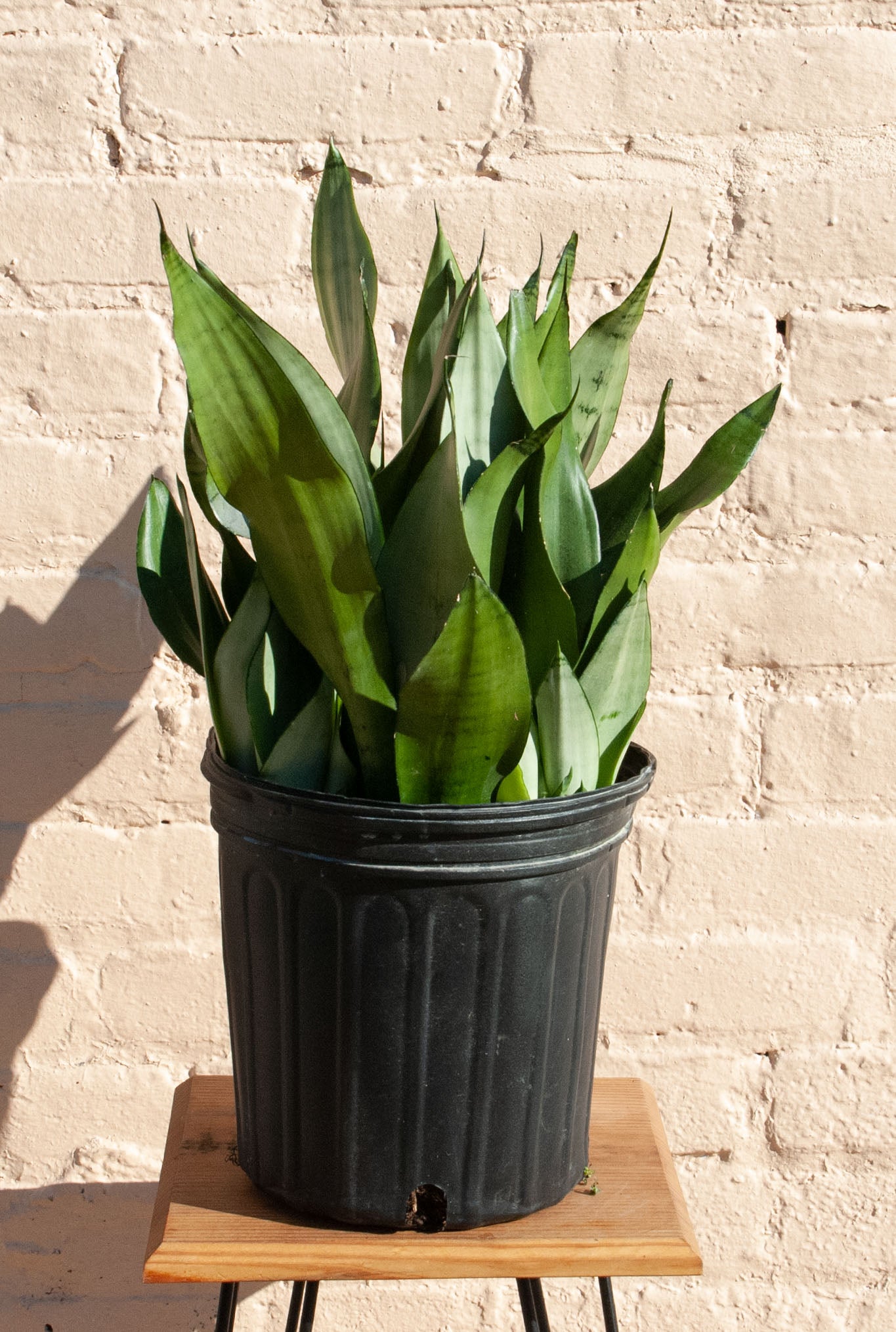 Native to Western Africa, Sansevieria is a large family of plants that are fairly easy to maintain. Sansevieria moonshine prefers bright light, but can adjust to low light conditions as well (leaves will darken in lower light). Water when all of the soil has completely dried, these plants are very drought tolerant. Watering frequency depends on the amount of light the plant is receiving!