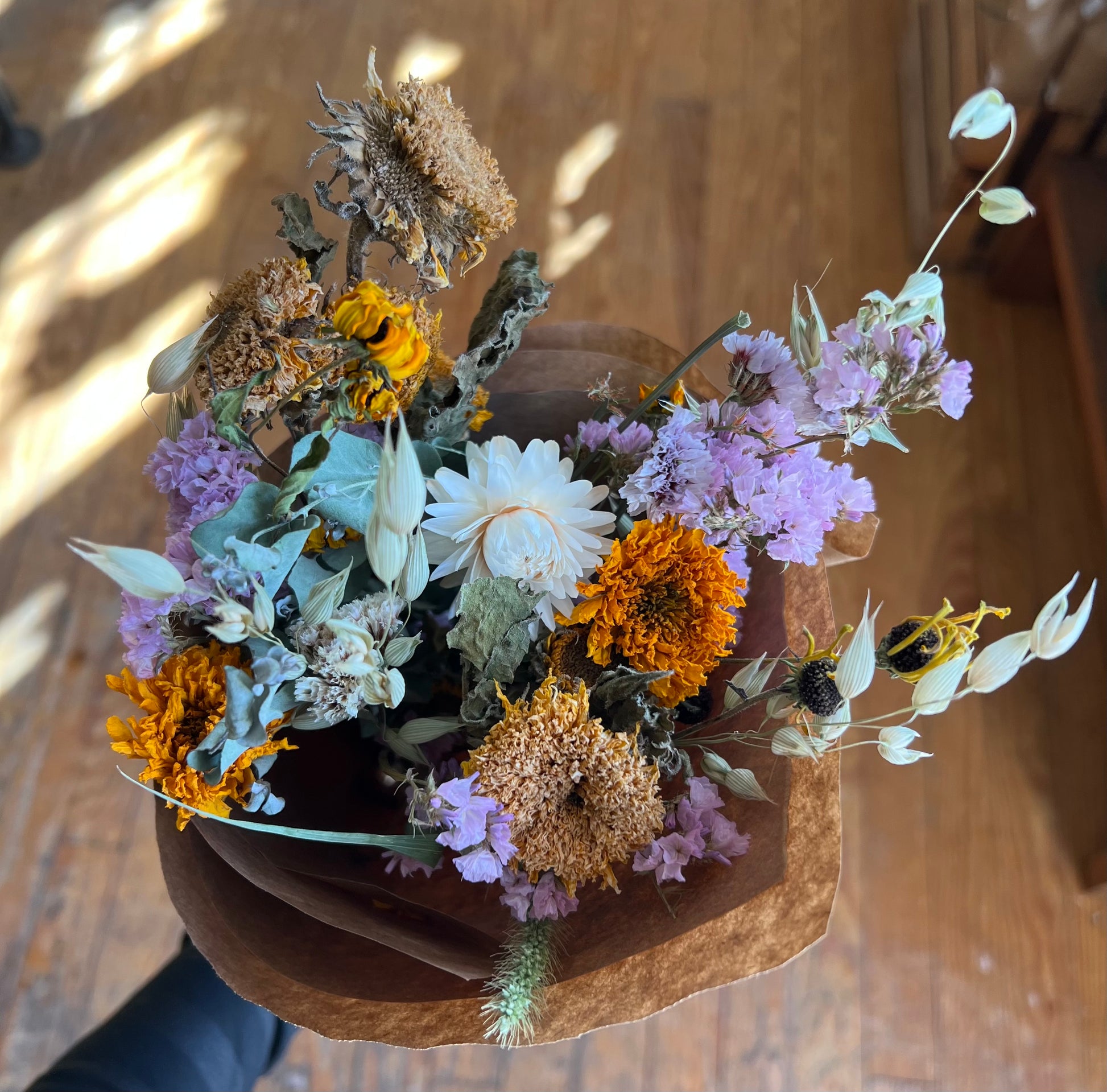 Locally grown and dried flower bouquets by Spore & Seed.