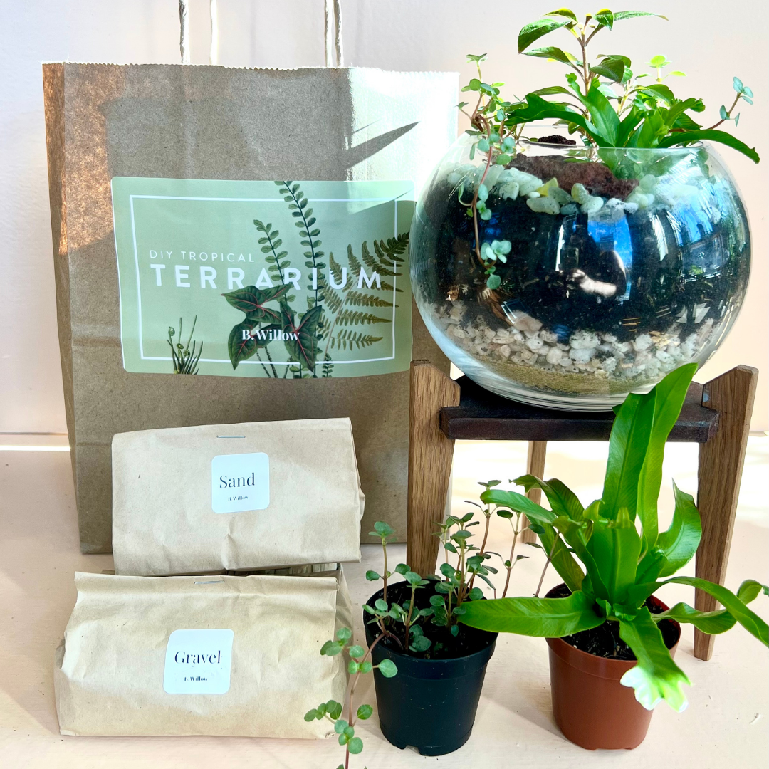 An all-in-one kit to make your own globe terrarium! Choose between tropical, cacti, or succulent. Each kit comes with 2 mini plants, drainage layers, planting materials, 1 glass globe, instruction and care card!